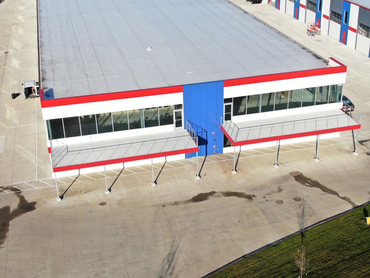 The front wall is made up with a series 20-½ joint ACM Panel from Metal Designs in three different colors