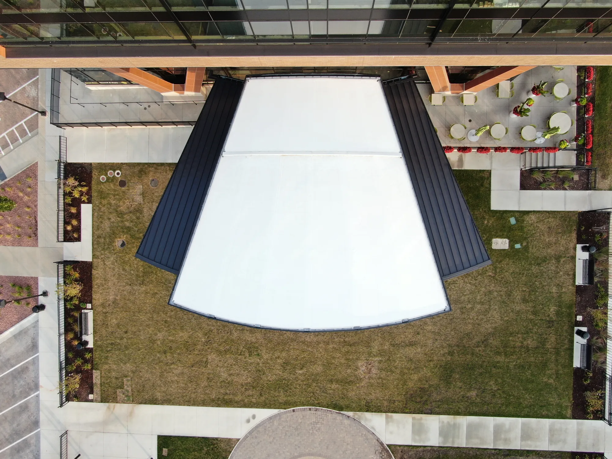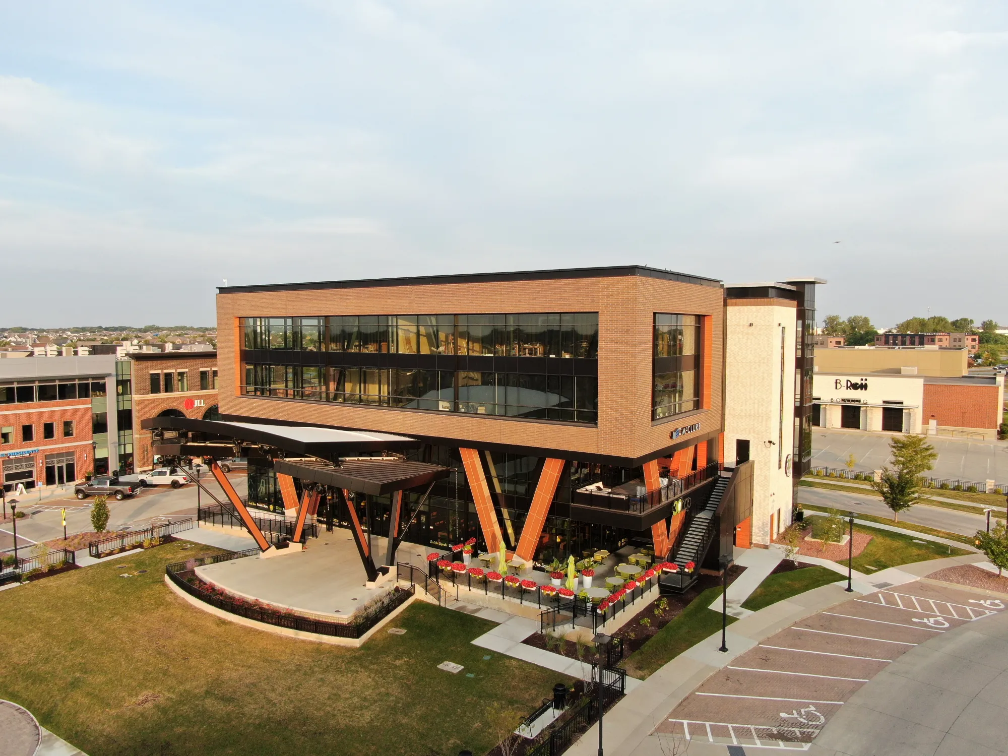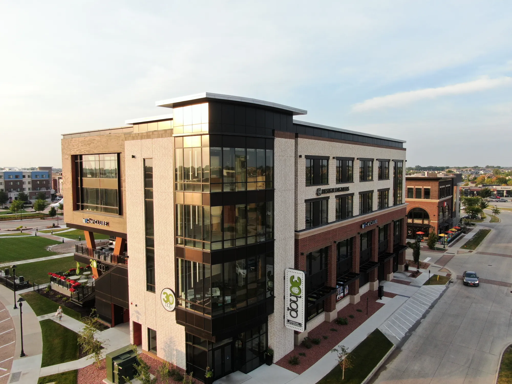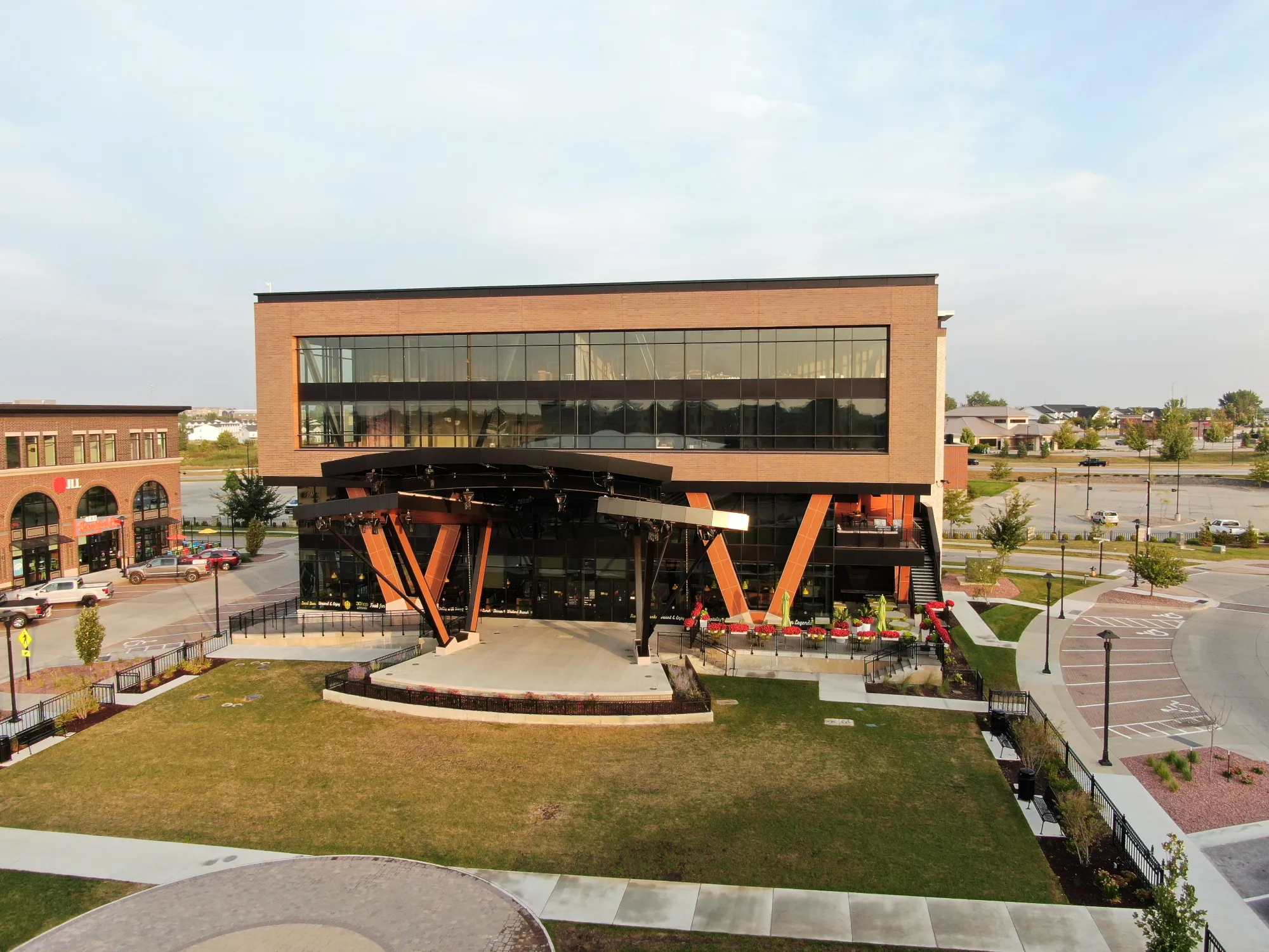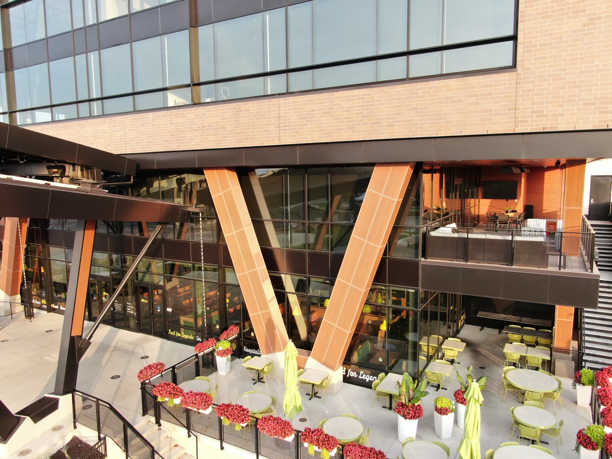 District 7 features Series 20 and 30 ACM panels, along with Longboard wood grain panels and soffit Elevate (Firestone) UC3 roof panels on the stage.