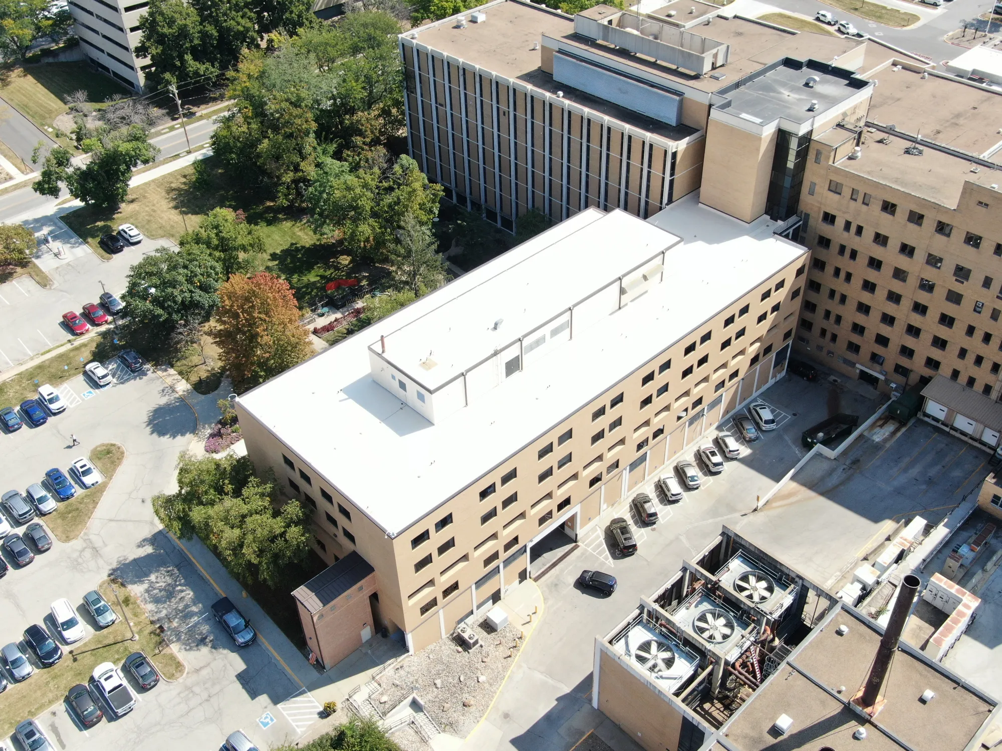 Complete tear off to concrete deck, instillation of a 725 tr vapor barior, r25 insulation with ⅛ tapor, fully adeheared 2 layers of shur mb 70 modified sbs 135 mil fleece back tpo tan 30 year versico ndl warranty